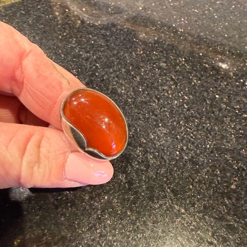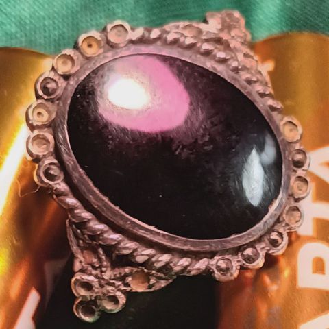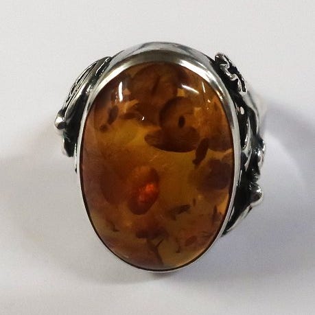 Sterling sølvring med poleret rav, ca 18-19 mm i diameter, kender ikke præcis str.