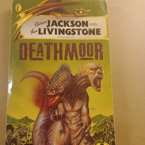 Sælger Sværd og Trolddom/Fighting Fantasy Deathmoor bogen er på engelsk da den aldrig er blevet udgivet i Danmark