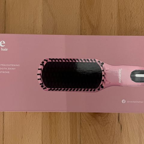 Nectarine Beauty hårbørste glattebørste i lyserød farve. Børsten har en rektangulær form med indbyggede varmeelementer og justerbare varmeindstillinger. Designet til at glatte og style hår effektivt.