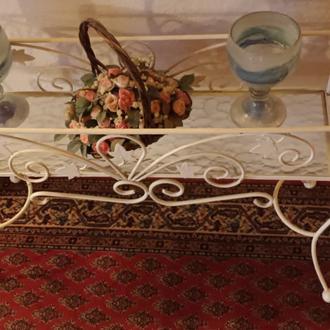 Gammel sødt blomsterbord med løse glashylder ( øverste glashylder er desværre knækket men er let at erstatte da det ligger løst)