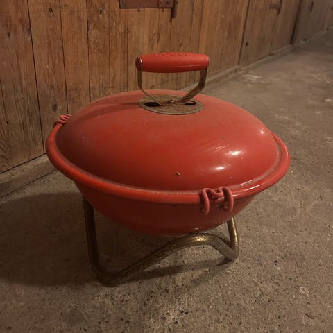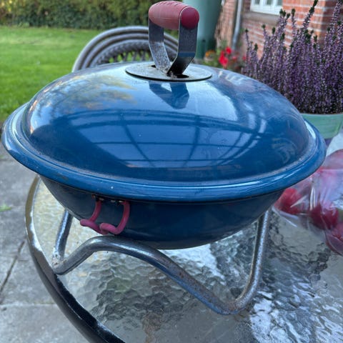 Lille og transportable kugle grill i sort farve ny i original emballage ideal når man er ud i de fri, mærke Bodum, kan hentes for 250 kr.(normal pris 749 kr.) str. 40 cm. i diameter