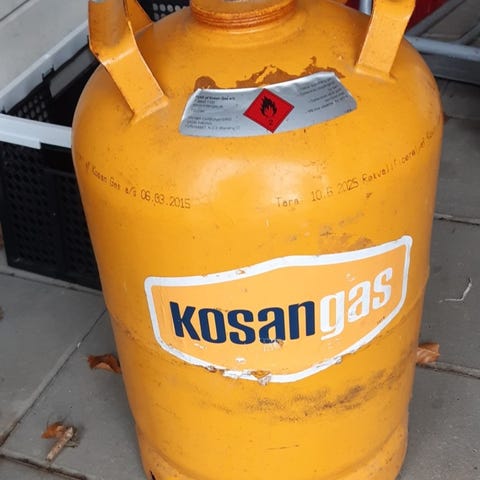 Fyldt og plombereret Kosan gasflaske med en kapacitet på 5kg. Flasken er en letvægtsudgave (ca 2kg) og har en værdi på ca 400 i sig selv uden gas. Ombytning/påfyldning af gas koster 200, så derfor er prisen sat til 600 og er derfor ikke til at forhandle om ved mindre der købes 2. Så kan jeg slå 100kr af den samlede pris så du betaler 1099,- for 2 👍