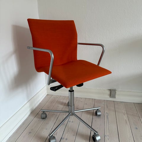 Betrukket med gråt uld. Super flot og elegant kontorstol med armlæn