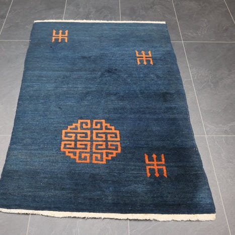 Dette er et håndknyttet østligt tæppe lavet af bæredygtige, naturlige materialer. Måden at knytte det på og mangfoldigheden i mønstrene gør dette tæppe unikt og understreger det autentiske og håndværksmæssige karakter.