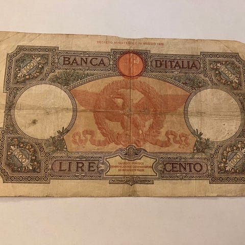 100 Lire Banca d'Italia 04/05/1926 Stor B "Azzurrina"