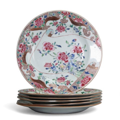 To porcelænsskåle med Amsterdams bont-dekoration fra Qianlong-perioden (1736–1795) fra Kina, hver ca. 7 cm høj og 14,7 cm bred, i god brugt stand med mindre slid på den ene og små frits og en lille randrevne på den anden. Klik på den blå "gå til varen" knap, for at købe eller byde på denne vare. Den samlede pris vil blive vist inden du afgiver dit bud.