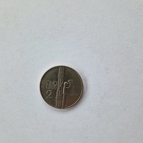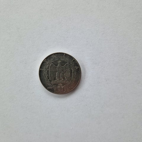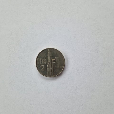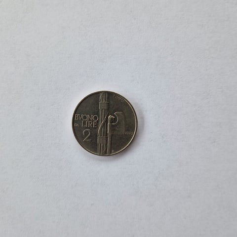 Autentisk 2 Lire mønt i Italma (legering af aluminium og magnesium), præget i 1939 ved Rom-myntmønten (R-mærke).