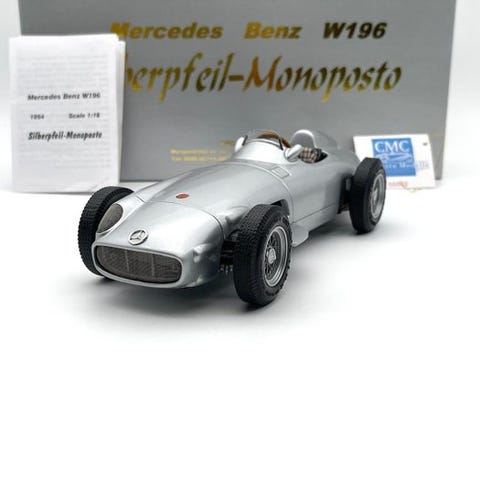 Mercedes-Benz W154-model, sølvfarvet støbt metal, startnummer 24 (1938), god stand, i originalemballage. Klik på den blå "gå til varen" knap, for at købe eller byde på denne vare. Den samlede pris vil blive vist inden du afgiver dit bud.