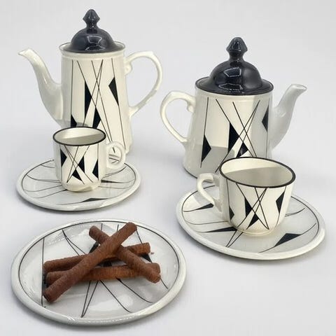 Service til 8 personer bestående af 8 kopper med underkop og 8 kage- eller desserttallerkener.