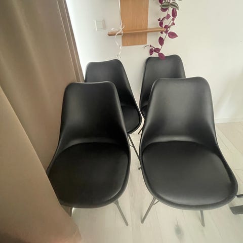 4 stk polstrede spisebordsstole ca 3 år gamle. Sælges grundet flytning. Står i virkelig pæn stand. Røgfrit hjem.