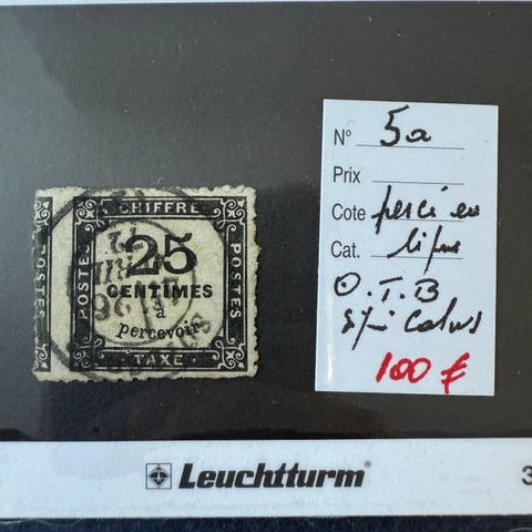 Skattemærke 1f lyserød på strå, fra Frankrig, afstemplet, med certifikat. Klik på den blå "gå til varen" knap, for at købe eller byde på denne vare. Den samlede pris vil blive vist inden du afgiver dit bud.