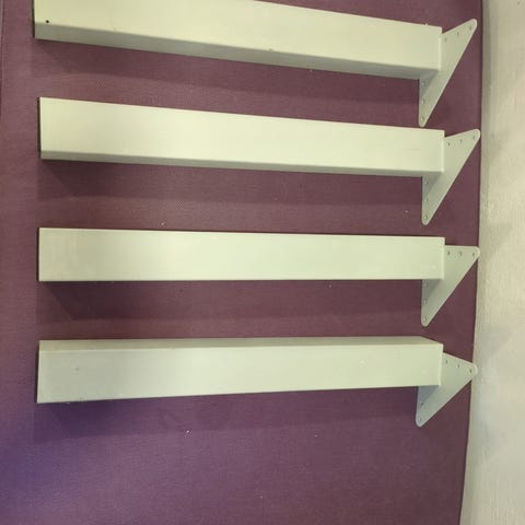 Sorte pulverlakerede stålben. Brugt til spisebord. Skruer medfølger ikke, skal afhentes i Hillerød. Det bredeste stykke er 80,5 cm, og de er 70cm høje.