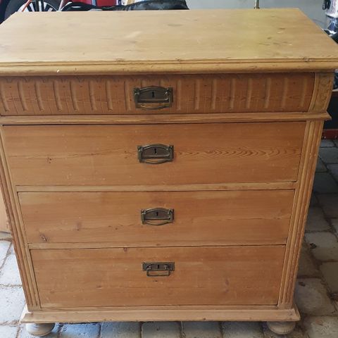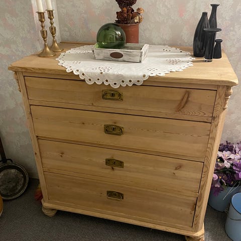 Kommoden er blevet slebet ned til rent træ og efterfølgende fået bivoks.