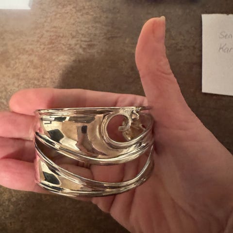 Bangle of possibly copper and silver. A gift that was never used, just stored. Bought from Janina Smykker in Fiolstræde some years ago. Pick up from Kbh N.