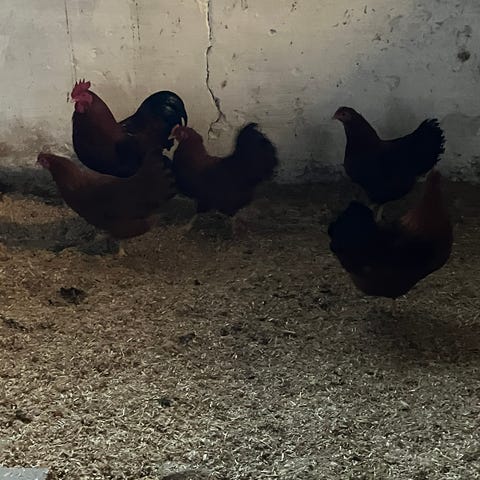 1 hane og 3 høns Vorwerk, 1 høne Australops og 6 høns krydsninger, alle fra i sommer. De er vant til at gå sammen og er i æggelægning . Kontakt 21463052