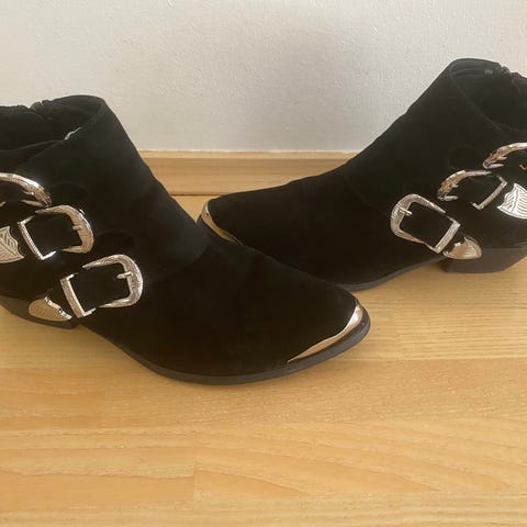 Sofie Schnoor støvler i størrelse 39 med sort farve. Støvlerne har en lynlås på siden for nem af- og påtagning. Sålen er robust med mønster for bedre greb. Indvendigt er støvlerne foret med materiale, der kan ses på billederne.