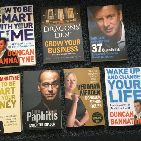 Bøger skrevet af nogle af de "løver", der har været i den engelske udgave af TV-serien (på engelsk Dragon's Den). Alle bøger er i pæn stand og sælges samlet for 150 kr. + fragt.