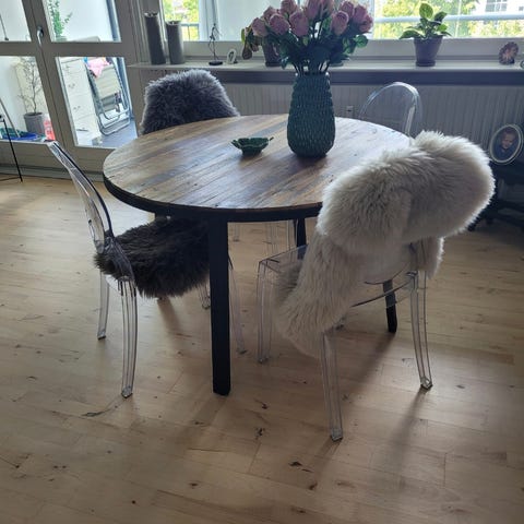 4 kvalitetsspisebordsstole fra italienske LaPalma i rigtig god stand sælges. Stolene har et let design med lakeret stålstel og formpresset bøgefiner på sæde og ryg. De er ca. 25 år gamle, men har kun få brugsspor, selvom de er brugt flittigt i alle år. Sælges helst som samlet sæt for 1.200,-.