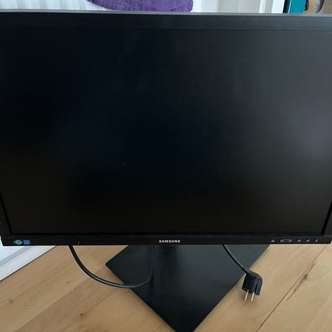 Samsung S24R350 24 tommer skærm med HDMI-tilslutning. Skærmen har et moderne design med en sort finish og en justerbar fod til stabil placering. Velegnet til både hjemme- og kontorbrug.