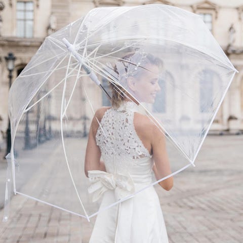 Ubrugte hvide paraplyer - jeg købte dem til mit bryllup - men det regnede ikke alligevel, så de er ikke brugt