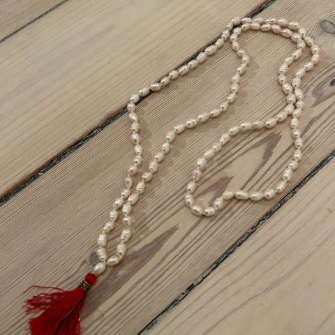 Smuk mala i mahogni-træ – købt på ashram i sydindien.