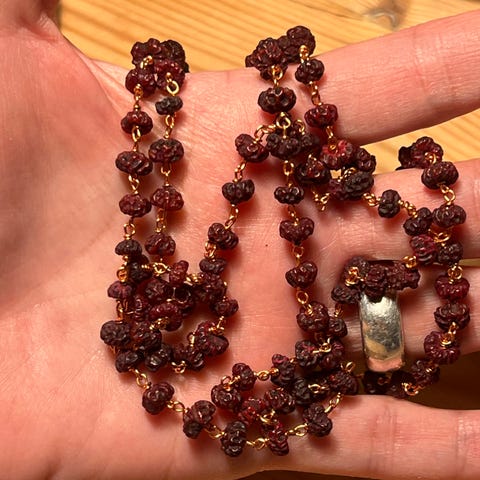 Smuk mala i mahogni-træ – købt på ashram i sydindien
