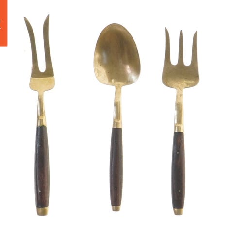 Tags: salatsæt, messing, træhåndtag, vintage, elegant