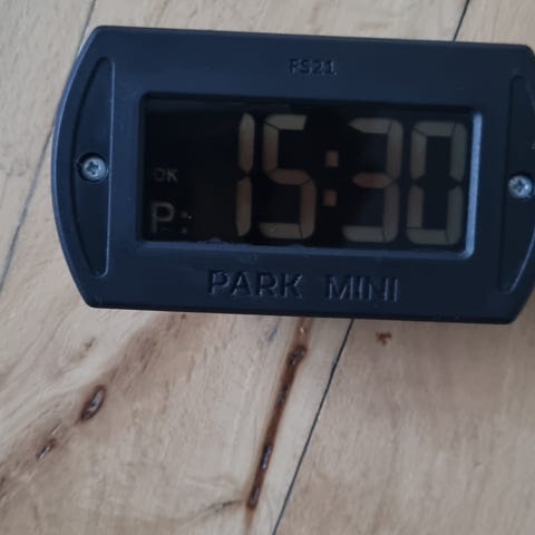 Park Mini elektronisk parkeringsskive med digitalt display til visning af parkeringstid. Designet og fremstillet i Danmark. Enheden er beregnet til brug i biler for at angive ankomsttid ved parkering. Kompakt størrelse og elektronisk funktionalitet.