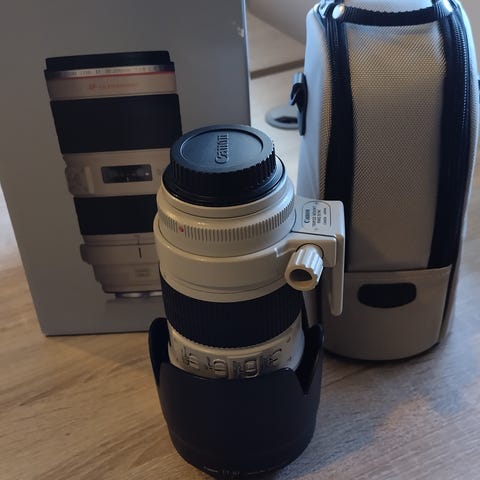 Canons legendariske zoom objektiv, EF 70-200mm f1:28 L IS USM, i mint tilstand. Medfølgende: Taske (uden rem), Tripo mount ring, for og bagdæksel og ET- 80C modlysblænde.