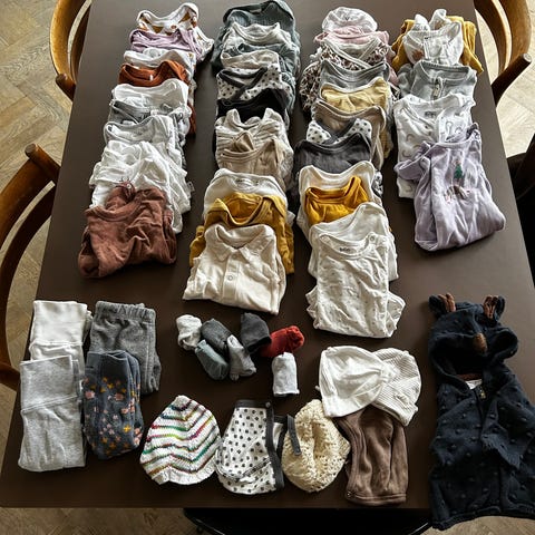 Blandet baby og småbørnstøj og overtøj. Alt fra body, buks, trøje, shorts og huer flyverdragter og jakker.