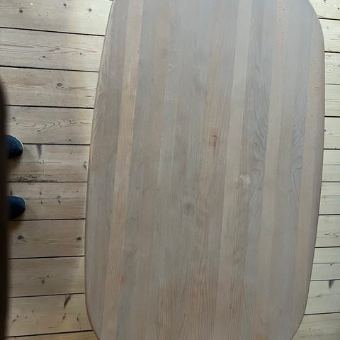 Gangsted/Gangsø sofabord med klapper, der hviler på et lille udtræk (der også kan bruges til kaffekop eller lign). Klapperne kan løftes af. Bordet er af bøg og det er solidt og stabilt.