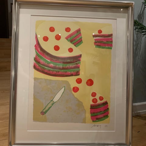 Værket er monteret bag chamois passepartout. Rammens mål: 37x37 cm.