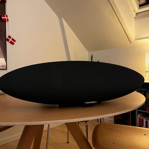 Bowers & Wilkins Zeppelin Air højttaler med sort stof og kromdetaljer.