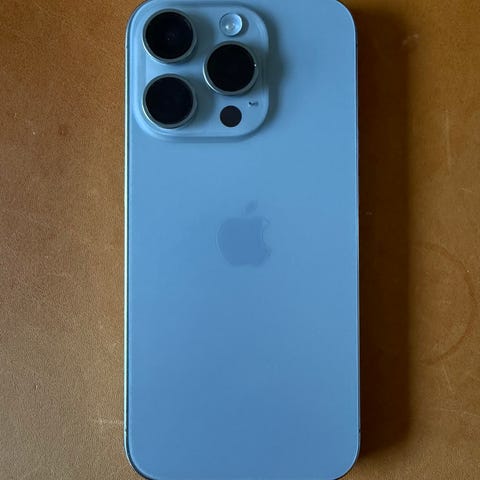 Apple iPhone 15 Pro smartphone med 128 GB lagerplads. Den er købt i 2024 og er ikke brugt ret meget. Har altid været i cover. Den er virkelig flot. Farven er blue titan