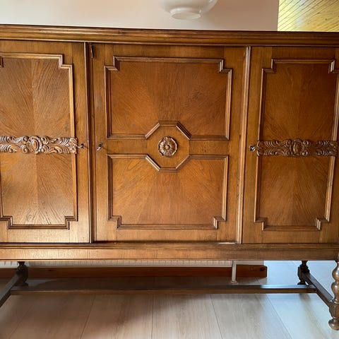 Antikt Skænk i Træ med Skuffer og Glaslåger