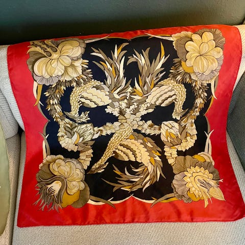 HERMÈS “CLIQUETIS” VINTAGE SILK SCARF – BORDEAUX