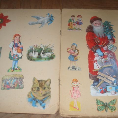 Omslaget er ikke særligt kønt, men det er indholdet til gengæld: Album spækket med skønne glansbilleder fra perioden: 1900-1950. De første mange sider har billeder fra begyndelsen af 1900-tallet - og de sidste 15 sider har glansbilleder fra 1950erne. Der er mange herlige billeder - og vi har talt op til, at der er godt 500 glansbilleder i alle størrelser. Jeg sender gerne for købers regning. Vi har et antikt album mere, og vil du spare på fragtprisen kan du få det med til en reduceret pris. Så begge albums går for 650 kroner + forsendelse.Se de mange billeder. VIGTIGT: Betaling skal foregå via Danske Bank eller kontant.