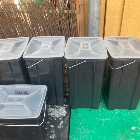 Der er sat mærkater på til sortering – kan tages af hvis man ønsker andet formål.