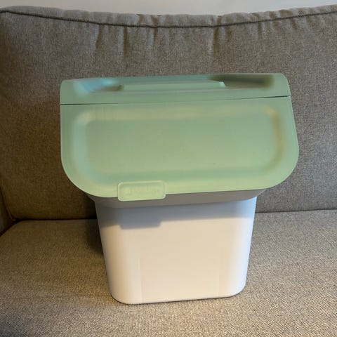 Beholderen vipper frem og kan tages ud når de skal tømmes.