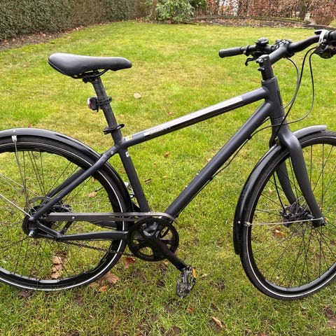 Giant herrecykel (str. Height L) med stel i grå farve. Cyklen er designet til mænd og egner sig til daglig transport og fritidsbrug. Cyklen er knap et år gammel - fremtræder meget ny. Har ikke været brugt et halvt år pga. sygdom. Den har 16 gear, lygter og godkendt lås.