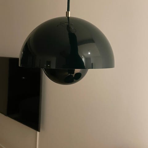 Original &Tradition Flowerpot VP1 pendel designet af Verner Panton i farven Stone Blue – afdæmpet grå/blå nuance.
