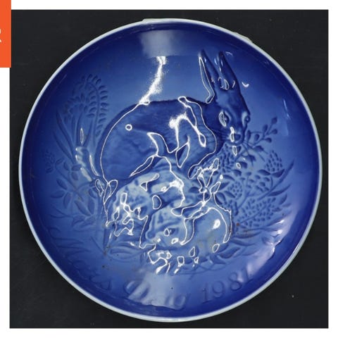 Denne porcelæn tallerken er en særlig udgave i blå og hvid farver med et fint billede af fugle og blomster på forsiden. Den har teksten 'Mors dag 1988' indgraveret på forsiden. Tallerkenen er lavet af B&G Copenhagen Porcelain og har en diameter på 15 cm. Der er en ophængsholder på bagsiden, som gør det muligt at hænge tallerkenen på væggen. Der står også 'Mother's Day' og et serienummer på bagsiden.
