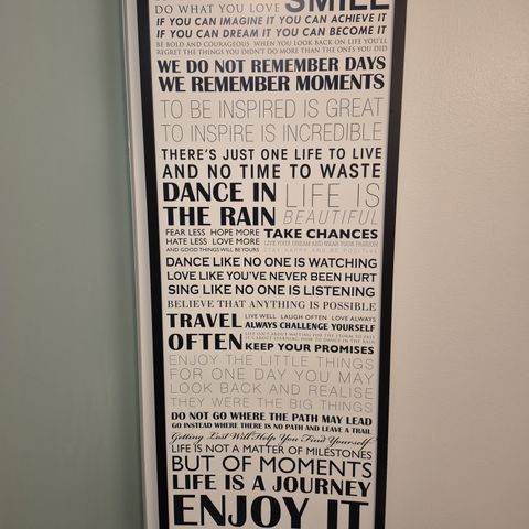 Dette er en indrammet plakat med et inspirerende citat: 'Don't judge me. I was born to be awesome, not perfect.' Plakaten er indrammet i en sort ramme og har en størrelse på 21x30 cm. Rammen ser ud til at være pakket ind i beskyttelsesfilm. Bagsiden af rammen har beslag til nem ophængning på en væg.