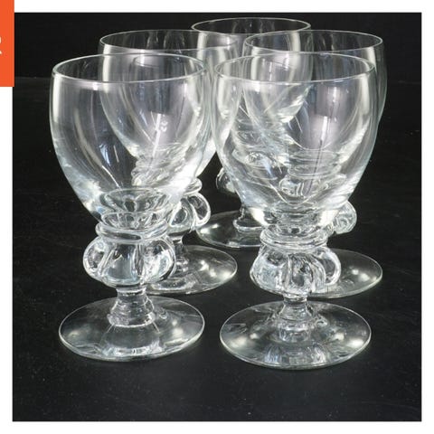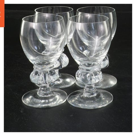 Et sæt bestående af fire klare hvidvinsglas fra Holmegaard I serien Ideelle. Sælges samlet og prisen er for alle 4.