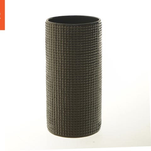 Denne vase er lavet af keramik og har en rund form med en diameter på 10 cm. Vasen har et naturligt beige farvet look med mørke brune striber omkring den øverste del. Den er ideel til at holde små blomsterarrangementer eller som enkeltstående dekoration. Bunden er flad, hvilket gør vasen stabil. Den har en glaseret overflade, der giver en blank finish og fremhæver de brunlige stribers detaljer.