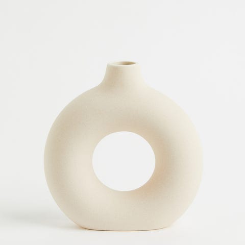 H&M Home dekorationsvase i beige farve med en rund, ribbet form. Vasen er velegnet til indretning og dekoration.