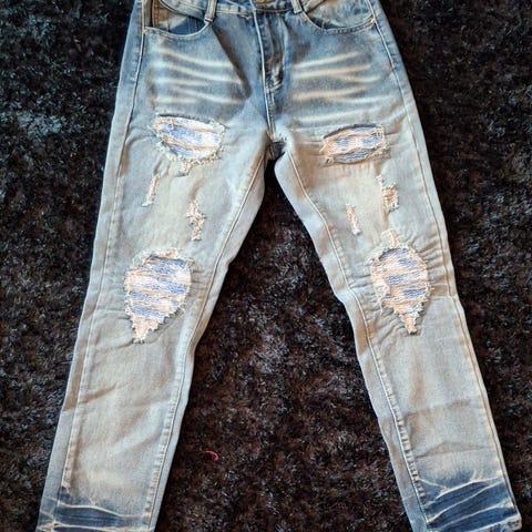 Children's sweatshirt, size 130. It has a small hole on one of the sleeves.