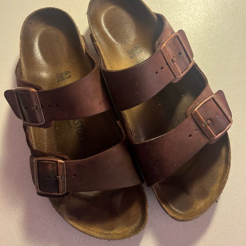 Birkenstock Sort lædersandal med korksål (str. Længde, 28 cm)