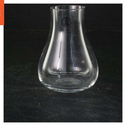 En dekorativ glasvase med dimensionerne 23x15 cm. Den har en klar og glat overflade, velegnet til at holde blomster eller som en dekorativ genstand på et bord eller en hylde.