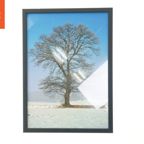 Plakat med et motiv af et stort træ stående på en mark under en klar blå himmel. Plakaten er indrammet i en simpel sort ramme. Bagsiden af rammen er forsynet med tråd for ophængning. Den angivne størrelse er 32x44 cm.